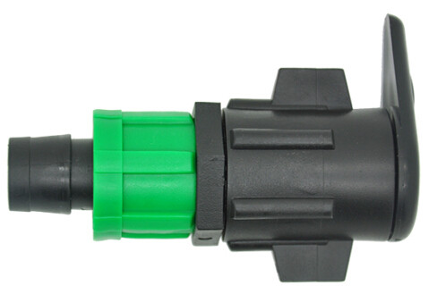 Застосовується в системах крапельного поливу. Служить для з'єднання крапельної стрічки і рукава LAY FLAT. Для монтажу необхідно за допомогою дирокала зробити отвір в рукаві LAY FLAT, помістити в нього виступаючу строну фітинга. Стрічку крапельну необхідно надіти на край з гайкою, попередньо відкрутивши її. Закрутити щільно піджимну гайку.
